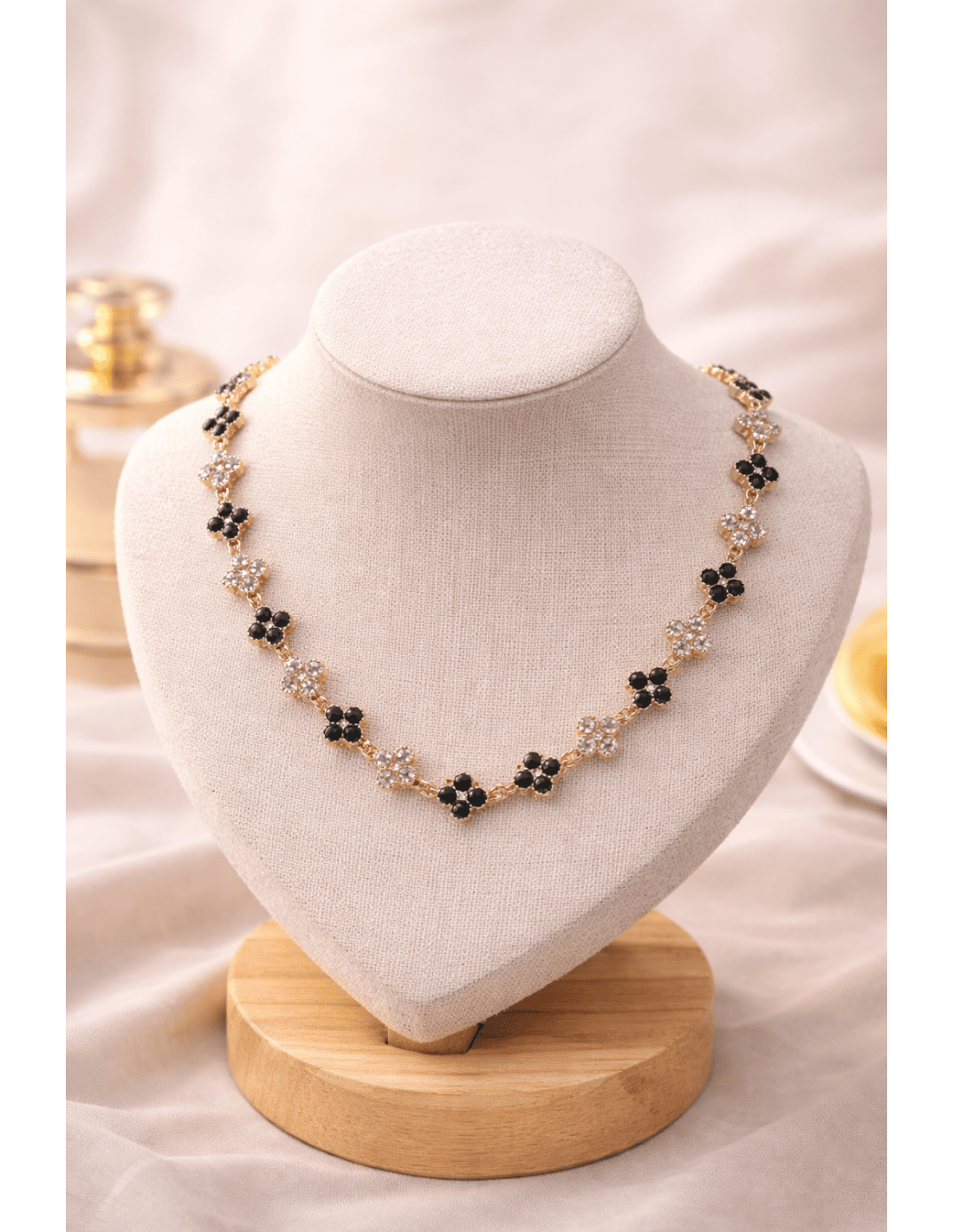 Sofisticado, atemporal y lleno de carácter, este collar destaca por sus delicadas flores en tonos negros que aportan un toque de elegancia y misterio a cualquier look.
